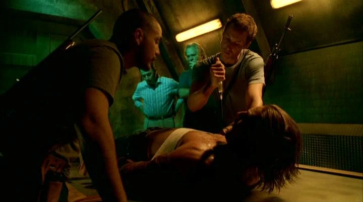 - Sawyers Protestschreie, während diesem von den Anderen eine große Spritze ins Brustbein gerammt wird.
