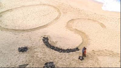 Bernard versucht mit Hilfe anderer Überlebender am Strand ein mindestens 10m großes "SOS-Zeichen" aus schwarzen vulkanischen Steinen von einem Lavafeld 800m landeinwärts zu bauen. Jedoch beenden sie nicht einmal das erste S, weil alle, die angefangen haben, Bernard bald verlassen, so dass er versuchen muss das Zeichen alleine fertig zu stellen. Schließlich gibt Bernard die Idee auf, als Rose ihm erzählt, dass sie lieber auf der Insel bleiben möchte.