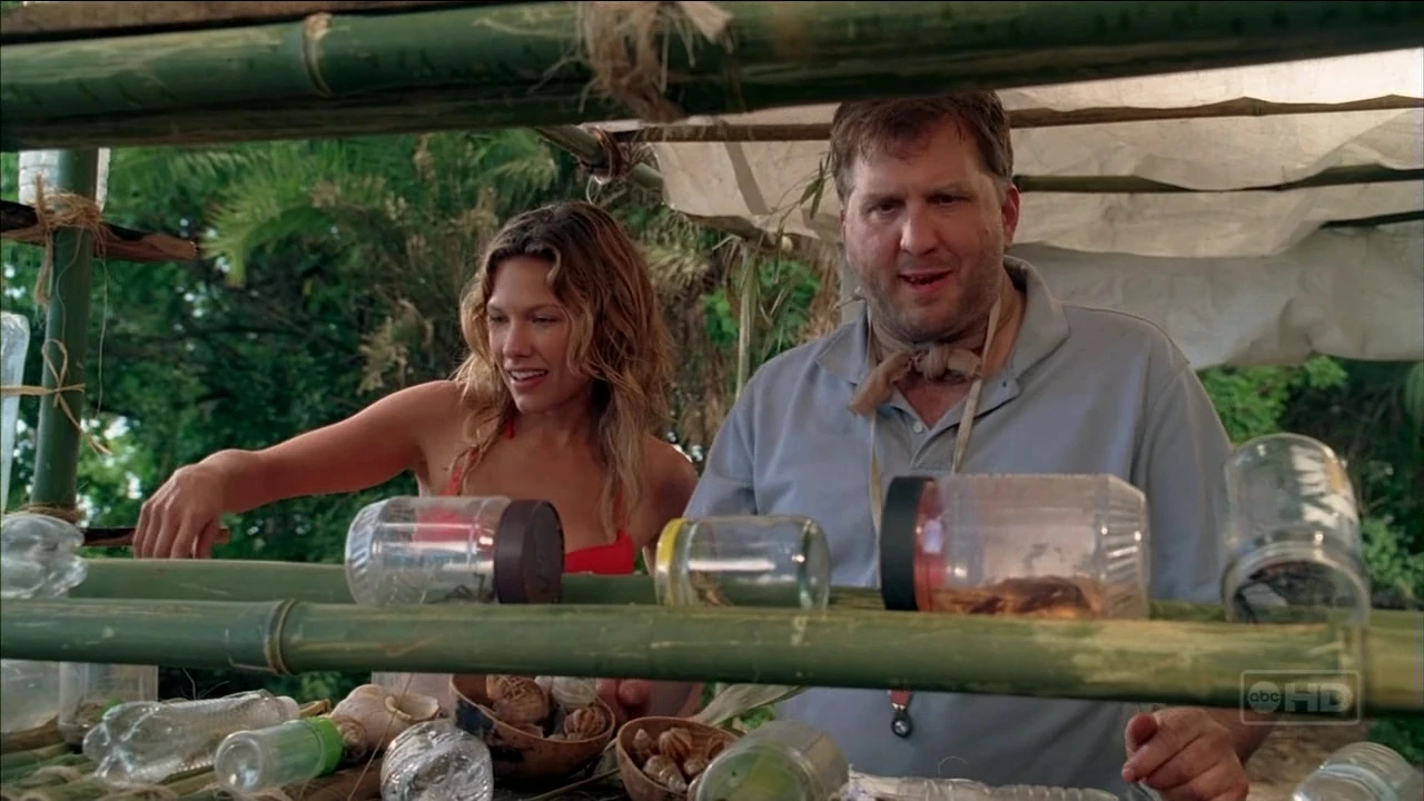 Sawyer wird von einem Geräusch genervt. er fragt Jin, ob er das auch hören könne, doch dieser antwortet nicht. Er geht in den Dschungel und findet dort Hurley, wie er DHARMA Lebensmittel, welche er offensichtlich gestohlen hatte, bunkert und isst. Sie treffen eine Vereinbarung: Sawyer erzählt den Anderen nichts, und Hurley hilft ihm den Baumfrosch zu fangen. Als sie den Frosch haben, tötet ihn Sawyer, obwohl Hurley ihn weiter weg freilassen wollte.