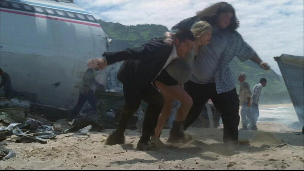 Jack sieht eine schwangere Frau, die am Strand um Hilfe ruft. Als er zu ihr rennt, wird ein Mann, von einer der Turbinen eingesaugt, welche danach explodiert. Jack schützt sie vor der Explosien und gibt Hurley den Auftrag sich um sie zu kümmern.