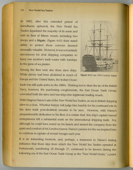 Der Besitzer und Leiter der Handelsgesellschaft ist Magnus Hanso, ein ehemaliger Kapitän, der ein Geschäftsunternehmer wurde. Es gibt keine Angaben über den Besitzer der Black Rock, aber es ist bekannt, dass sie von Dock 23 in Portsmouth vom Stapel gelaufen ist und dass Hansos Handelsgesellschaft die Docks 18 bis 27 besitzt. [1] (Obwohl Portsmouth seit der Mitte des 18. Jahrhunderts als Hafen genutzt wird, operiert die West-Afrika Schwadron der Royal Navy seit 1808 von dort aus, um den Sklavenhandel zu unterbinden.)