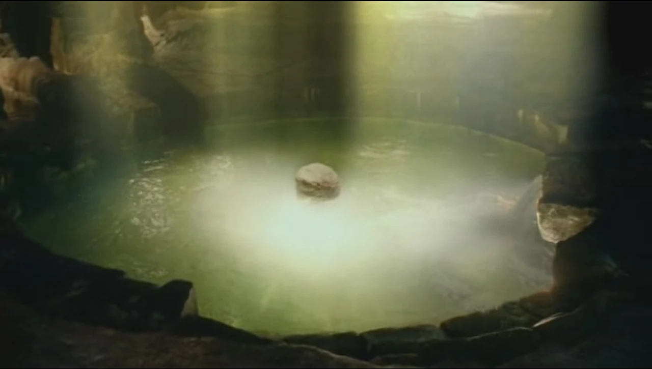 - Liegt die Quelle evtl. unter dem Schachtboden und der Insel - die Stele hält nur das rote heiße Licht zurück und erzeugt in Zusammenhang mit dem Wasser das goldene Licht?