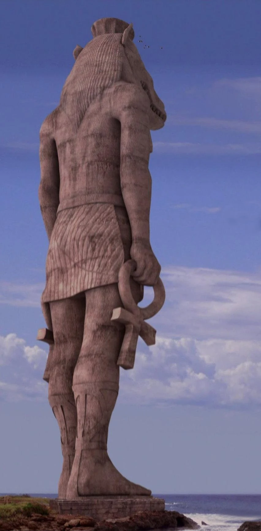 Die Statue besteht aus einem vierzehigen Fuß, der eine Sandale trägt. Er stammt anscheinend von einer kolossalen Statue, die entweder verfallen ist oder zerstört wurde. Wenn man berücksichtigt, dass Sayid, Sun und Jin die Statue auf der Steuerbordseite sehen, muss sich die Statue an der westlichen oder nördlichen Küste der Insel befinden (da das Lager der Anderen irgendwo an der nördlichen Küste vermutet wurde). („Zusammen leben − Alleine sterben, Teil 1“)