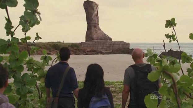Die Statue eines Fußes mit vier Zehen wird von Sayid, Sun und Jin an der Küste gesehen, als diese mit dem Segelboot zum vermuteten Dorf der Anderen segeln.