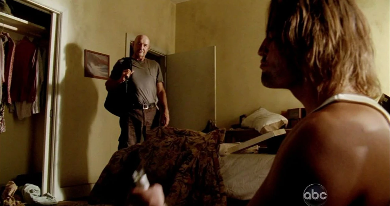 Während Locke in der Station den Einschluss erlebt, spielt Sawyer zusammen mit Kate und Hurley Poker um Obst, als Jack dazukommt. Nach einer Weile spielen nur noch Jack und Sawyer gegeneinander und Jack gewinnt Sawyers gesamtes Obst. Dann überredet er Sawyer, die Medikamente aus seinem Vorrat zu setzen, die er ihm dann ebenfalls abnimmt. Sawyer fragt ihn nach dem Spiel, warum er nicht auch nach den Waffen gefragt hat, worauf Jack ominös erwidert „Wenn ich 'ne Waffe will, dann krieg' ich sie auch.“ („Verriegelt“)