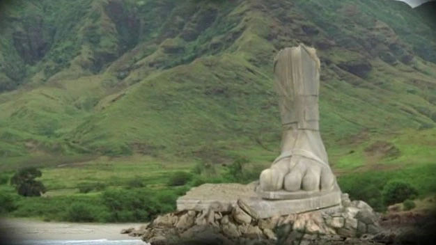 - Sayid trova una statua di un piede con quattro dita e un pezzo di gamba. ("Si vive insieme, si muore soli")