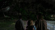 Nella casa di Ben, intanto, Ben e Locke ammassano tavoli e librerie davanti alla porta di ingresso. Hurley, sopraggiunto in quel momento con Aaron in braccio, chiede ai due uomini cosa stia succedendo. Locke gli dice di stare lontano dalla finestra. Hurley chiede a Ben come farà Sawyer ad entrare in casa con quella catasta davanti alla porta: l’uomo, freddamente, risponde che Sawyer non entrerà. Nel frattempo Sawyer si dirige verso la casa di Claire: nel tragitto incontra uno dei suoi compagni sopravvissuti ma, prima di potergli spiegare la situazione, l’uomo viene colpito da un proiettile proveniente dalla giungla circostante. Sawyer cerca di impedire ad altre persone di uscire dalle loro case ma un altro uomo ed una donna cadono sotto il fuoco incrociato circostante. Sawyer corre verso la casa di Claire, riparandosi il più possibile nel tragitto. Appena prima che riesca a raggiungere la casa della ragazza, però, uno dei militari nella foresta spara un colpo di bazooka contro la casa facendola esplodere. Sawyer, scagliato a terra, grida disperato il nome di Claire.