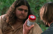 Hurley, apparentemente, tiene una scorta segreta di cibo che ha rubato dal Cigno. Sawyer alla fine scopre la scorta, e minaccia di raccontre agli altri sopravvissuti di questo, a meno che Hurley non lo aiuti a trovare la raganella il cui incessante gracidio lo sta irritando. Durante la loro ricerca, Sawyer continua la sua usanza and affibbiando a Hurley vari soprannomi, i quali sono tutti in qualche modo connessi al suo fisico. Hurley alla fine sbotta, affrontando Sawyer dicendogli che sa di essere grasso, e che non gli importa se Sawyer racconterà al resto dei sopravvissuti della sua scorta, almeno alle persone Hurley piace, al contrario di Sawyer. ("Uno degli altri") Sawyer allora, per la prima volta, si scusa con Hurley, e chiede il suo aiuto. Quando alla fine trovano la raganella, Hurley suggerisce di portarla in luogo lontano, dove Sawyer non potrebbe sentirla. Sawyer, gli viene un'altra idea, e schiaccia la raganella. ("Uno degli altri")