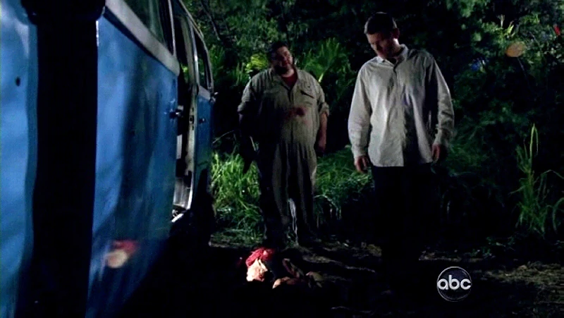 Hurley e Jin trovano un cadavere nel furgoncino, dei documenti, una cartina stradale, e una grande quantità di birra DHARMA. Improvvisamente, vengono raggiunti da Sawyer, che ha fatto ritorno dall'Isola Idra con Kate. Esige di saper dov'è la sua roba, ma la sua rabbia scompare con l'abbraccio di Hurley. Insieme, il trio solleva il furgoncino, e iniziano a cercare un modo per riattivarlo. ("Tricia Tanaka è morta")