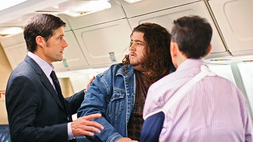 Jack calma Hurley, che si oppone alla presenza di Ben sull'aereo. ("316")