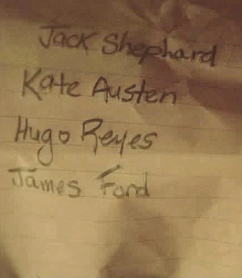 All interno della custodia per chitarre che Hugo porta con sè, viene trovata una lista scritta da Jacob " Jack, Hugo, Kate, Sayid, Jin".