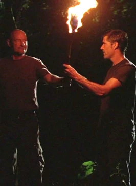 Claire later takes Jin to her hut where she has been living for three years, made of twigs. Later, the Man in Black comes to Claire’s Hut, where Claire reveals to Jin that the Man in Black is her “friend”. Later, Kate manages to track Sawyer to the Dharma/Others quarters. Sawyer is distraught over the loss of Juliet and it appears he is finally over his love of Kate. They part ways at the submarine dock.